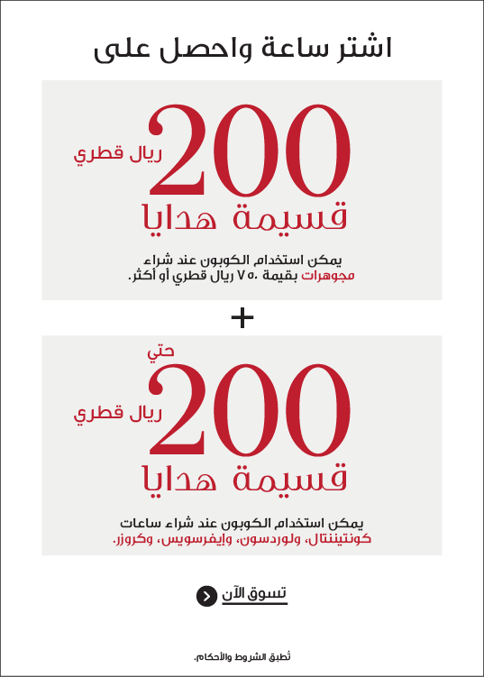 تسوق الساعات السويسرية من الماركات الفاخرة مثل لونجين، رادو، تيسو، هاملتون، وغيرها، حسب السعر. استمتع بأسعار مميزة ووفر حتى 300 ريال قطري على موديلات مختارة باستخدام كوبونات الخصم.